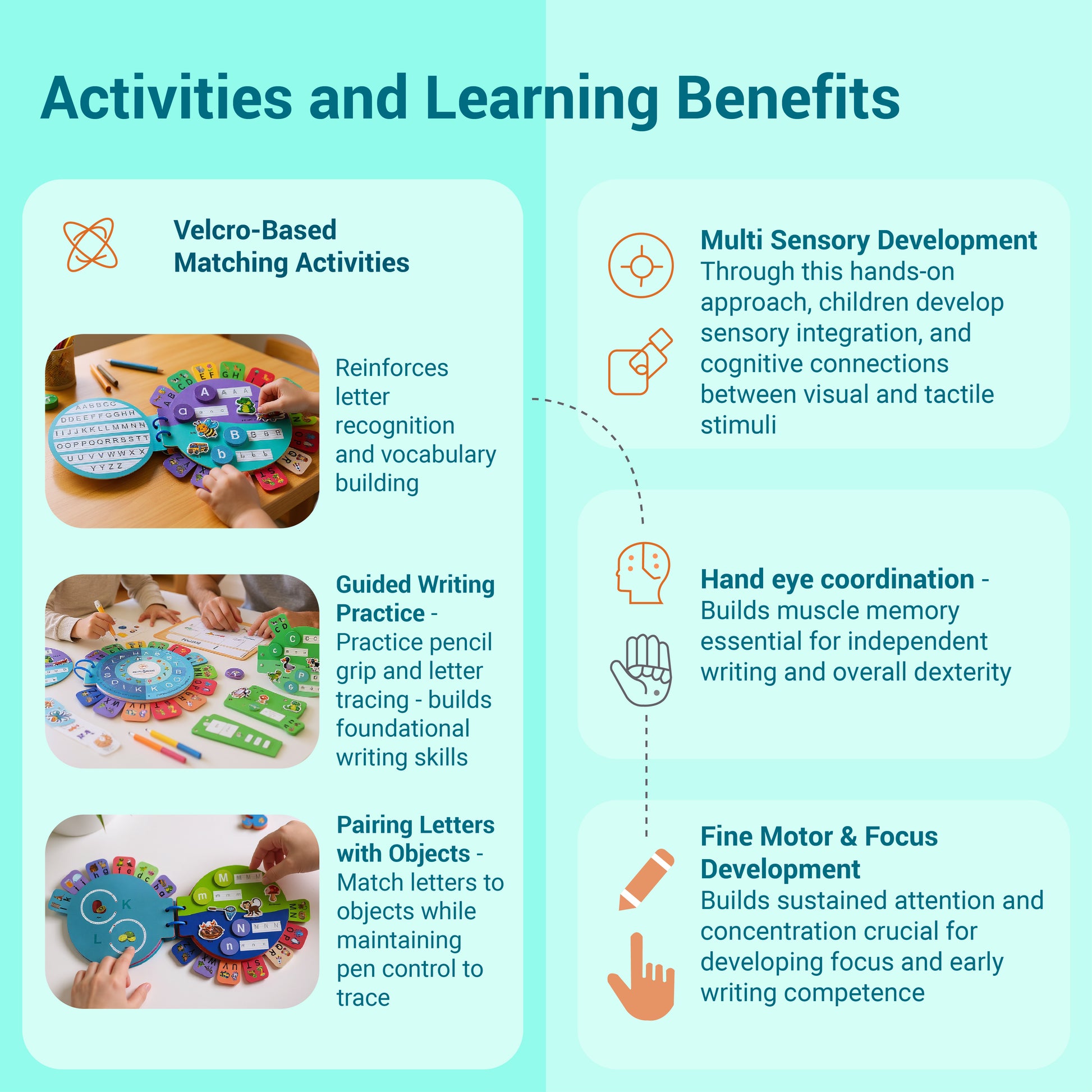 🚀 Progressive Skill Development Activities – Includes Letter Matching, Letter Description, Pen Control Training, and advanced Pairing Plus Pen Control Challenges that combine matching and writing skills for progressive mastery across developmental stages.