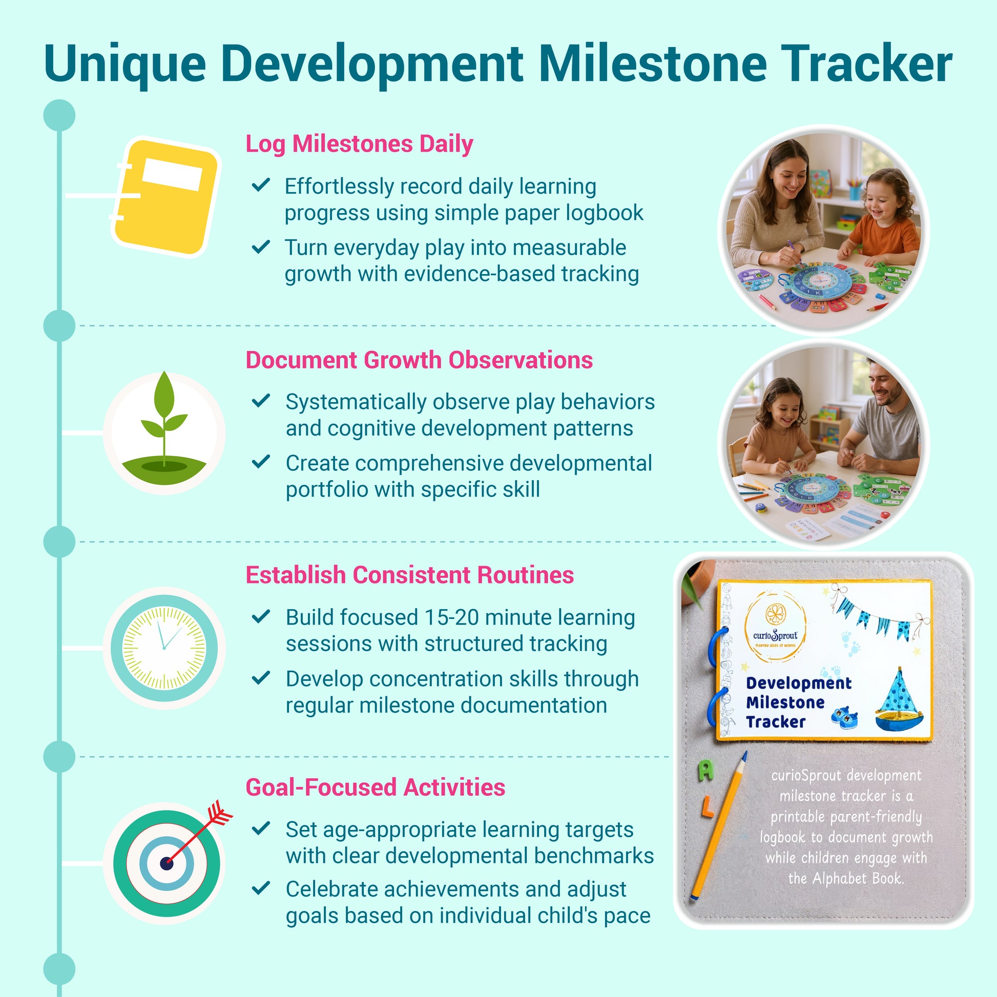 📓 First-in-India Development Milestone Tracker – Unique parent-friendly printable logbook for systematic observation and documentation of child's cognitive development, fine motor progress, and behavioral growth using evidence-based WHO frameworks for developmental tracking.