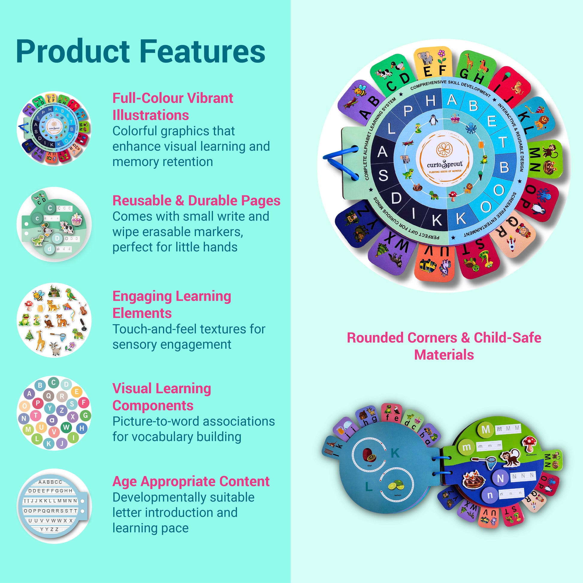 🔤 Complete Alphabet Learning System – Interactive 30-page circular book featuring all 26 capital and lowercase English letters paired with vibrant animals, fruits, and objects that reinforce letter recognition and build early literacy foundations for children aged 2-5 years.